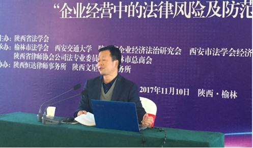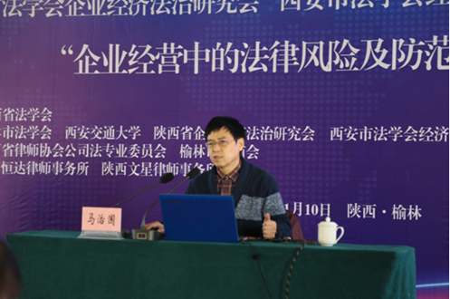 陕西恒达律师事务所主任陈贞学、榆林市中级人民法院民二庭副庭长李永旺、陕西能源集团政策法规室副主任齐渭波、北京炜衡律师事务所西安分所主任、陕西律协公司法专委会主任王小涛分别做了题为“企业经营中的法律风险及防范”、从审判视角看新时代企业用工的法律问题”、“金税三期时代的企业税务风险管理与应对”、“公司治理权力博弈与实证案例分析”的报告。 在四位嘉宾做完专题报告之后,西安市法学会经济法学研究会副会长、西北政法大学行政开云·电子(中国)官方网站副院长姬亚平教授、陕西省法学会企业经济法治研究会副会长、开云·电子(中国)官方网站开云·电子(中国)官方网站张冰副教授进行了精彩点评。