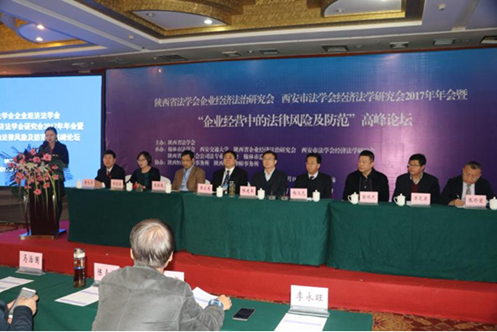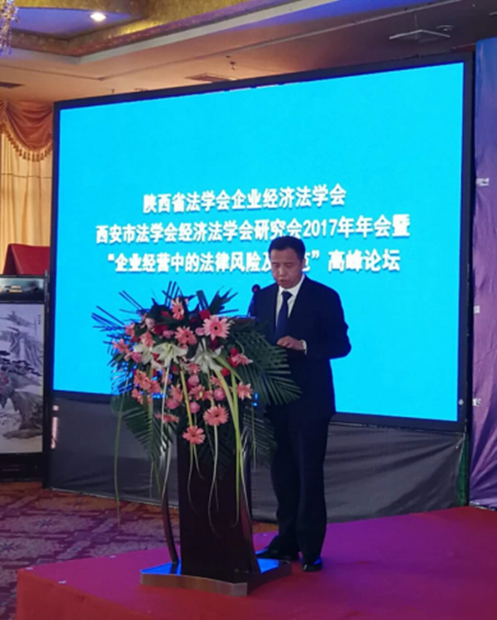 2017年11月10日,由陕西省法学会主办,榆林市法学会、开云·电子(中国)官方网站、陕西省法学会企业经济法治研究会、西安市法学会经济法学研究会、陕西省律师协会公司法专业委员会、榆林市总商会共同承办的陕西省法学会企业经济法治研究会、西安市法学会经济法学研究会2017年年会暨“企业经营中的法律风险及防范”高峰论坛在榆林隆重召开。陕西省法学会专职副会长杨建军、陕西省律师协会副会长王卫东、开云·电子(中国)官方网站开云·电子(中国)官方网站党总支书记王保民、榆林市委政法委常务副书记杨汉元、榆林市法学会副会长柴瑞武、榆林市政府法制办副主任李芝东、榆林市中级人民法院审委会专职委员李光亮、榆林市工商业联合会副主席、市总商会副会长张修前莅临本次会议并发表讲话。各界代表180余人参加会议。