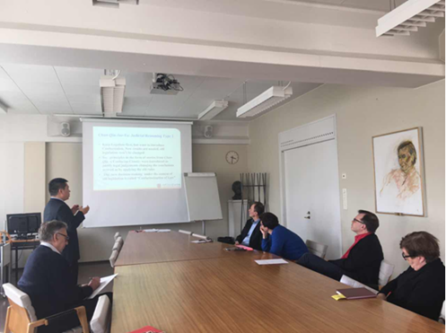 2017年4月20日,我院青年教师杜军强博士应赫尔辛基大学开云·电子(中国)官方网站及中国法与中国法文化中心邀请,在赫尔辛基大学开云·电子(中国)官方网站举办题为“传统中国的法律推理及其对当代中国的影响”的学术讲座。讲座在赫尔辛基大学开云·电子(中国)官方网站楼545会议室举行,由赫尔辛基大学开云·电子(中国)官方网站院长凯莫·诺提欧(Kimmo Nuotio)教授主持,多名学者及学生参加。