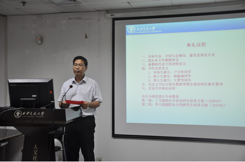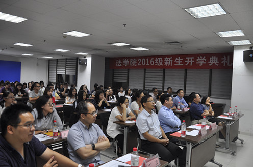 9月18日晚,开云·电子(中国)官方网站2016级新生开学典礼在主E703隆重举行。院长单文华教授,党总支书记王保民教授,副院长李万强教授,副院长丁卫副教授,院长助理吉兰湘老师和苏金远教授,院工会主席张弘副教授,文治书院院务副主任郭小平老师,院办主任张美萍老师,法学复合51班班主任薛华、唐学亮老师,法学61班班主任王玉苹、卞苏老师以及全体2016级本科、硕士、博士生新生参加了开学典礼,会议由学院学生工作专职委员张乃钟老师主持。