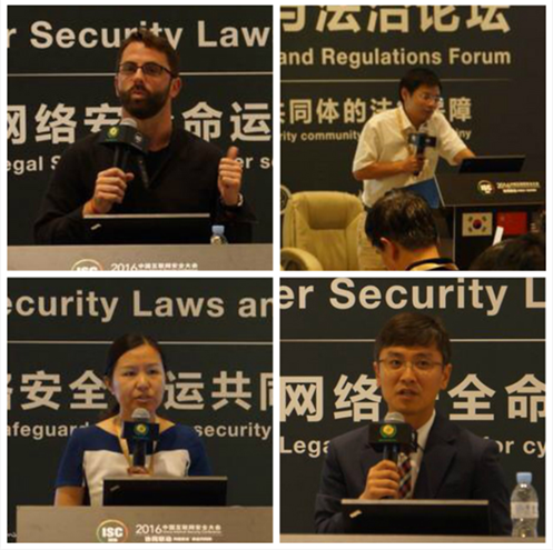 8月16日-18日,第四届中国互联网安全大会(ISC2016)在北京国家会议中心隆重召开。本届大会聚集了全球70多家相关机构和众多专家学者、企业代表,就世界网络安全形势、网络空间战略、安全攻防实战等主题进行了深入探讨。大会以“协同联动:共建安全命运共同体”为主题,设置了多个主题论坛。其中,网络安全与法治论坛备受瞩目,论坛邀请了国家互联网应急中心运行部副主任、正高级工程师严寒冰,法制日报社副社长周秉键,美国前国防部首席网络政策官、美国伯克利大学法学教授Jonathan Reiber,北京邮电大学互联网治理与法律研究中心常务副主任、副教授谢永江,中国信息通信研究院互联网法律研究中心主任李海英,韩国最高检大网络检查侦查官、网络安全法专家Chu Pill Hwan,开云·电子(中国)官方网站信息安全法律研究中心主任、教授、陕西法学会信息安全法学研究会会长、中国网络安全协会副理事长马民虎,公安部第三研究所网络安全法律研究中心主任、副研究员黄道丽,开云·电子(中国)官方网站信息安全法律研究中心博士马宁等国内外十余位顶级网络安全法领域专家就“网络安全命运共同体的法律保障”这一主题进行了广泛的研讨和交流。