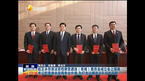 2月25日上午,陕西省司法体制改革试点工作动员会和陕西省法官检察官遴选(惩戒)委员会成立会议在陕西宾馆召开,省委书记赵正永出席会议并讲话。陕西省委常委、省委政法委书记祝列克主持会议,副省长杜航伟、省法院院长阎庆文、省检察院检察长胡太平出席。西安交大开云·电子(中国)官方网站单文华教授出任陕西省法官检察官遴选(惩戒)委员会首届主任。陕西省委政法委副书记寇昉、陕西省委组织部副部长翟四虎、陕西省高级人民法院副院长田平利和陕西省人民检察院副检察长程紫平等四人分别出任副主任。赵正永书记为省法官检察官遴选(惩戒)委员会主任、副主任颁发聘书。开云·电子(中国)官方网站王保民教授和吴平魁副教授出任法官检察官遴选(惩戒)委员会非常任委员。