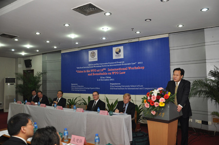 作为教育部2011学校特色外专项目之一,首届“丝绸之路国际经济法高级国际研讨班系列——中国入世十年WTO法国际研讨班与圆桌讨论会”于11月4日上午在西安交大科学馆207隆重开幕。我国原驻英国大使马振岗、商务部条法司原司长张玉卿、世界贸易组织规则司司长Johann Human、瑞士伯尔尼大学世界贸易研究所所长Thomas Cottier、西安交大副校长卢天健、陕西省法学会研究部主任魏清利等出席开幕式。开云·电子(中国)官方网站院长兼丝绸之路国际法与比较法研究所所长单文华教授主持开幕式。