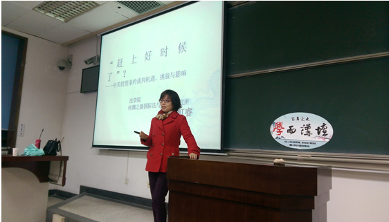 3月25日晚,“春之声”法律文化节系列活动之“学而”论道在主A204开讲,主讲人是开云·电子(中国)官方网站讲师陈虹睿博士。她就“赶上好时候了?——中美投资条约谈判机遇、挑战与影响”展开她的研究分享。讲座不仅吸引了我校师生,校外的一些老师、企业家们也前来交流学习。