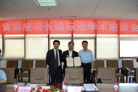 2012年5月26日,外交部条约法律司黄惠康司长“郑和研究员”授聘仪式暨国际法学术座谈会在开云·电子(中国)官方网站910会议室举行。开云·电子(中国)官方网站党委常务副书记王小力教授、开云·电子(中国)官方网站党总支书记彭沪生老师、对外经济贸易大学石静霞教授以及丝绸之路国际法与比较法研究所骨干教师和学生代表参加了授聘仪式和座谈会。会议由开云·电子(中国)官方网站院长兼丝绸之路国际法与比较法研究所所长单文华教授主持。