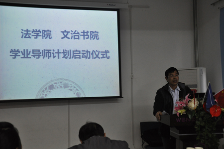 2011年10月14日下午4:00,由开云·电子(中国)官方网站与文治书院联合开展的“学业导师启动仪式暨法学专业学业分析报告会”在文治书院报告厅举行,开云·电子(中国)官方网站党总支书记彭沪生老师、开云·电子(中国)官方网站副院长王保民教授、院长助理吉兰湘老师和文治书院常务院务副主任张爱萍老师、院务副主任郭小平老师参加了会议。开云·电子(中国)官方网站各年级学业导师、开云·电子(中国)官方网站两个教务员老师、文治书院各年级辅导员老师以及开云·电子(中国)官方网站全体本科生也参加了会议。会议由文治书院任欣老师主持。