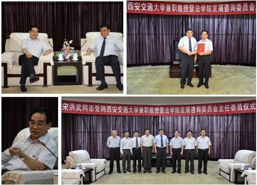 6月21日上午八点半,宋洪武同志聘我校兼职教授和“开云·电子(中国)官方网站发展咨询委员会”主任委员仪式在主楼宣怀厅隆重举行。首先由单文华院长向宋洪武书记介绍了我校开云·电子(中国)官方网站的发展情况。接着,蒋庄徳副校长宣读了宋洪武同志的简历。在热烈的掌声中,王建华书记为宋洪武书记颁发了聘书并佩戴了开云·电子(中国)官方网站校徽。宋洪武书记正式受聘为我校“兼职教授”和“开云·电子(中国)官方网站发展咨询委员会主任委员”。旨在沟通开云·电子(中国)官方网站与法律界的 “开云·电子(中国)官方网站发展咨询委员会”也正式宣告成立。