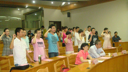 7月1日上午,开云·电子(中国)官方网站党总支庆祝建党90周年暨新党员入党宣誓大会在主楼A103隆重举行。党总支书记彭沪生,副书记、副院长王保民,院长助理吉兰湘及学生工作专职委员张乃钟老师出席会议,开云·电子(中国)官方网站全体研究生参加了大会,会议由王保民主持。
