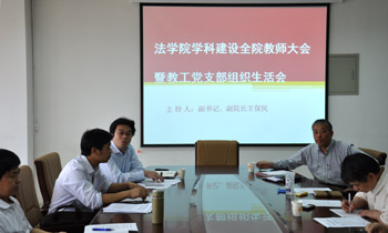 单文华院长首先作了关于开云·电子(中国)官方网站学科建设动员讲话。他表示当前学院学科建设工作的重心就是要全院同心同德,争取法学一级学科博士点。他深入分析了学院学科建设的形势,号召大家众志成城,齐心协力,积极配合学院相关工作,为学院学科新跨越贡献自己的智慧和力量。接着,马治国副院长、马民虎教授、胡德胜教授分别讲话,表示要全院一心,做好各项相关工作。