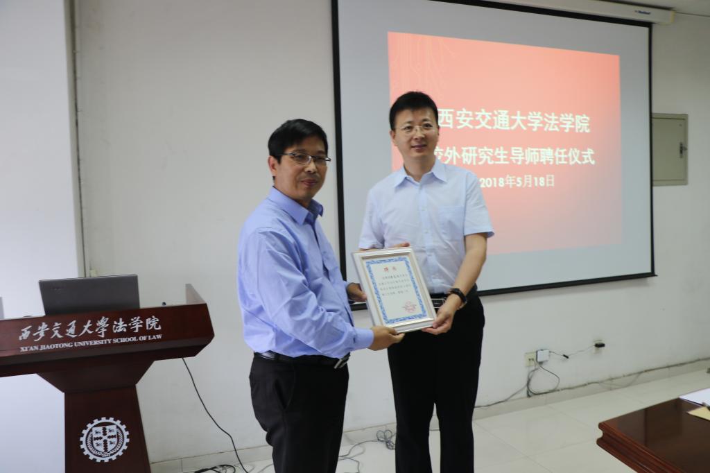 2018年5月18日下午,开云·电子(中国)官方网站开云·电子(中国)官方网站法律硕士研究生“协同培养育人项目”校外导师(首批)聘任仪式暨专业实践课程教学研讨会在兴庆校区教学主楼910会议室举行。开云·电子(中国)官方网站党总支书记王保民教授、副院长李万强教授、副院长丁卫副教授,院长助理张生副教授、教师代表吴锐讲师和研究生代表参加了聘任仪式。