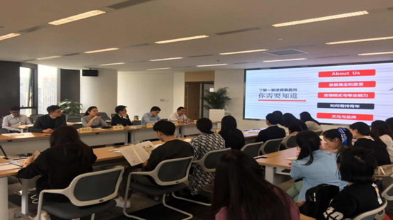 随后海普睿诚律师事务所代表人员和交大开云·电子(中国)官方网站的同学们在会议室就坐。首先由海普睿诚律师事务所行政总监种贵兴表达了对开云·电子(中国)官方网站马治国教授一行的欢迎及感谢;其次由运营总监孙婷详细讲解了海普睿诚律师事务所的规模、业务领域、专业建树、发展历程和社会公益等情况;再由律所最年轻的高级合伙人王奇律师以其自身的从业经历为同学们讲授了成为一名律师所应具备的能力与素质。