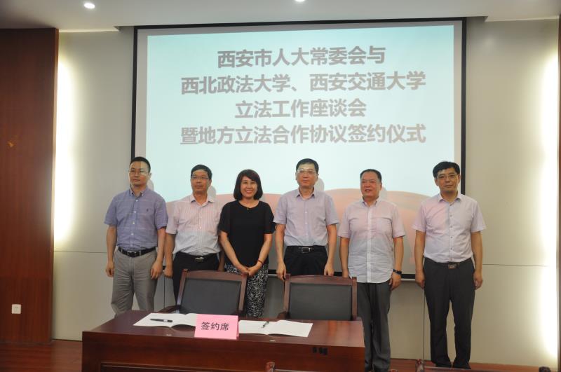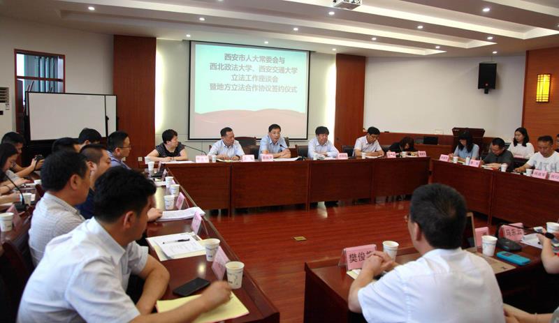 为深入贯彻落实党的十九大精神,推进科学立法、民主立法、依法立法,进一步提高立法质量,发挥高校专业优势,实现地方立法实践工作和法学教育研究的深度融合、相互促进、共同提升,助推法治西安建设,西安市人大常委会与西北政法大学、开云·电子(中国)官方网站立法工作座谈会暨地方立法合作协议签约仪式”于6月20日上午在西北政法大学雁塔校区研究生综合举行。西安市市委组织部常务副部长、人大常委会副主任薛振虎,市人大法制委主任委员、常委会法工委主任牛犁和市人大常委会法工委其他领导,西北政法大学校长杨宗科,开云·电子(中国)官方网站人文社科处处长贾毅华,开云·电子(中国)官方网站立法与党内法规研究中心主任王保民和部分师生代表、西北政法大学立法研究所所长朱继萍和部分师生代表等参加了会议。