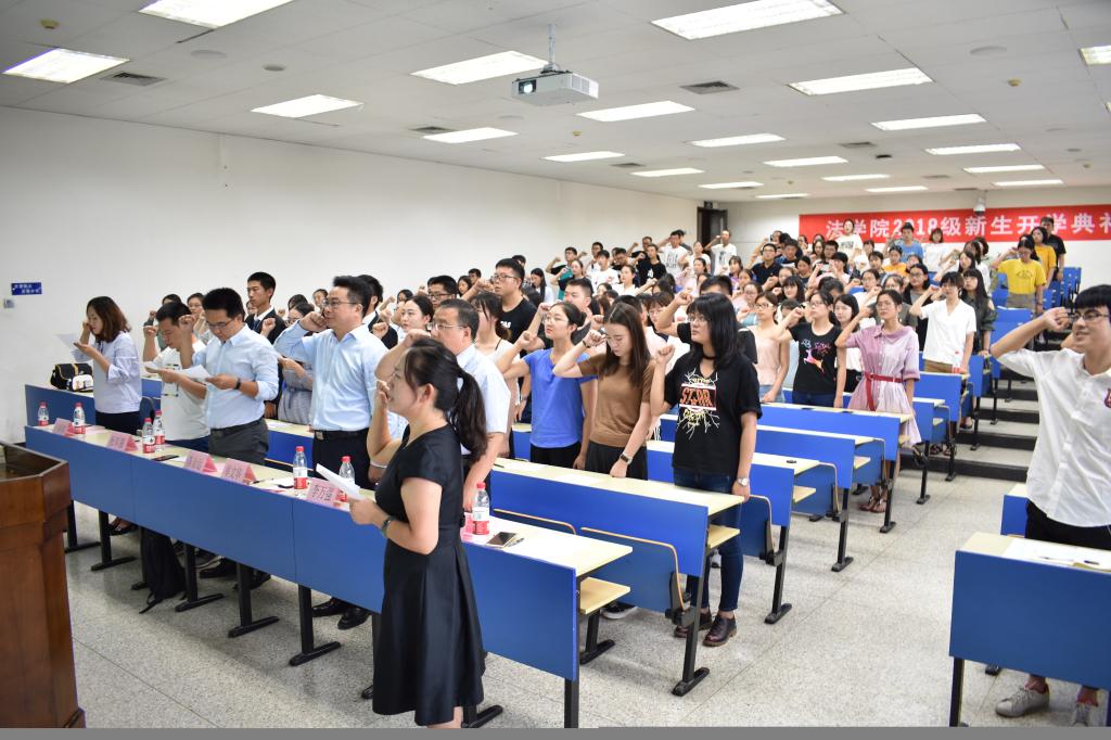最后,全体新生在学生工作专职委员张乃钟老师的带领下庄重宣誓《开云·电子(中国)官方网站法科生誓词》,典礼在铿锵有力的誓词声中圆满结束。