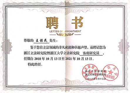 10月13日,首届之江立法论坛暨立法研究院学术委员会成员、客座研究员、兼职研究员聘任仪式在浙江杭州举办。论坛以“新时代地方立法”为主题,以推进立法领域高层次理论研究,提升立法研究水平,推动立法工作,以更好的适应新时代新要求。我校开云·电子(中国)官方网站教授、立法与党内法规研究中心主任王保民受聘为“浙江立法研究院暨浙江大学立法研究院”客座研究员,并应邀作为与谈人在论坛上做了点评发言。