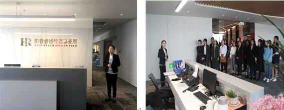 在行政专员李弋的引导下,交大学子参观了律所上下两层的开放式办公场所、模拟法庭、会议室等区域,了解了律师们的日常工作环境及氛围,切身体会了海普睿诚律师事务所深厚的文化底蕴和当代法律人的执业情怀。