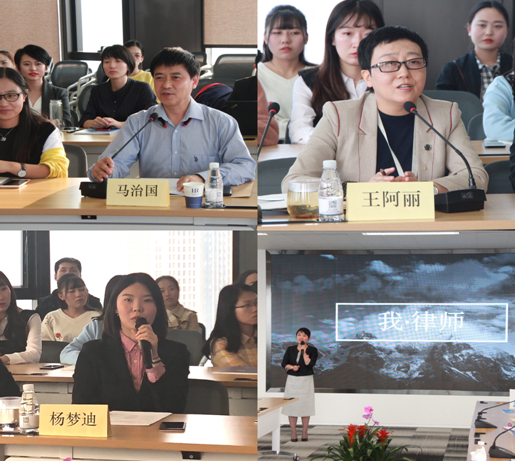 紧接着,师生们与律所的业务主任王阿丽、合伙人宋欢、行政总监钟贵兴以及客户主管杨梦迪进行了深入交流。在座谈中,马治国老师向律所参会人员介绍了同学们的学习情况、司法实务课程的目标及成果以及同学们此行的目的。接着王主任以自身经历为例表达了对马治国教授该种教学模式的赞同。此后,客户主管杨梦迪向同学们介绍了律所的基本情况、组织架构以及历史发展。而律所合伙人宋欢律师以《我·律师》为题,从自身经历出发,就本人执业的心路历程、律师行业现状、个人就业规划等问题进行了精彩分享,使同学们受益匪浅。