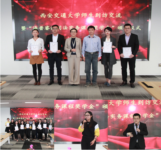 10月17日下午,西安交大开云·电子(中国)官方网站马治国教授带领三十四名法学与法律硕士研究生前往海普睿诚律师事务所学习交流,并与律师事务所业务部门主任、合伙人、行政总监及客户主管就实务经验、职业规划等问题进行了深入座谈交流,并为上一届该课程成绩优秀的学生颁发了“海普睿诚司法实务课程奖学金”。