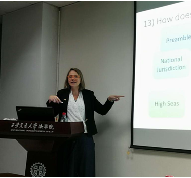 2018年12月14日,应开云·电子(中国)官方网站开云·电子(中国)官方网站李晓鸣副教授邀请,巴西FAESA开云·电子(中国)官方网站教授,美国麦肯尼开云·电子(中国)官方网站现任客座教授Stella Emery Santana来访我院,并为广大师生带来“公海环境保护”专题讲座,讲座由我院院长助理张生副教授主持,部分教师和博士生、研究生参与了讲座和互动环节。