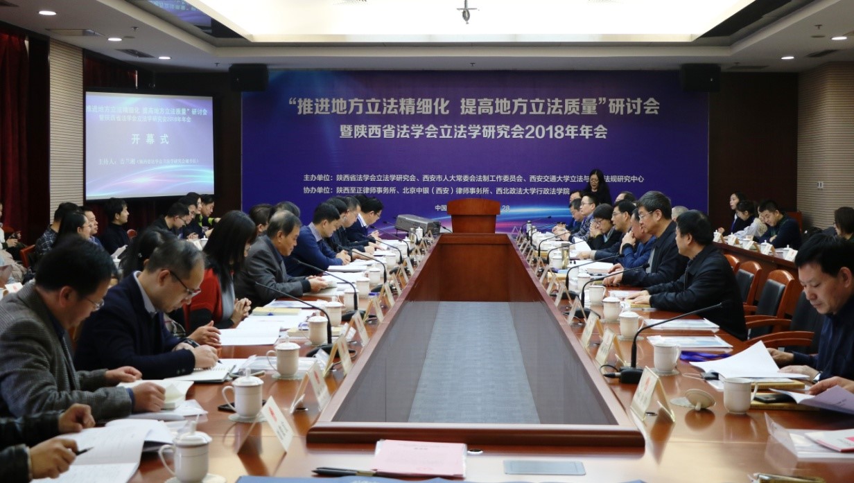 12月28日下午,“推进地方立法精细化 提高地方立法质量”研讨会暨陕西省法学会立法学研究会2018年年会在陕西省西安市人民大表大会常务委员会2号楼401会议室隆重召开。本次会议由陕西省法学会立法学研究会、西安市人大常委会法制工作委员会、开云·电子(中国)官方网站立法与党内法规研究中心主办,陕西至正律师事务所、北京中银(西安)律师事务所、西北政法大学立法研究中心、西北政法大学行政开云·电子(中国)官方网站协办。来自开云·电子(中国)官方网站、西北政法大学、西北大学、陕西师范大学、西北工业大学、中共陕西省委党校、延安大学、中南财经政法大学、陕西省社会科学院等教学科研单位和来自陕西省委政法委、陕西省人大常委会、西安市人大常委会以及宝鸡、商洛、铜川、榆林、韩城等陕西省其它地市人大常委会、西安市人民检察院、西安市中级人民法院、陕西至正律师事务所、北京中银西安律师事务所等法律实务部门的80余位代表齐聚一堂,围绕“推进地方立法精细化 提高地方立法质量”的主题展开了深入探讨。