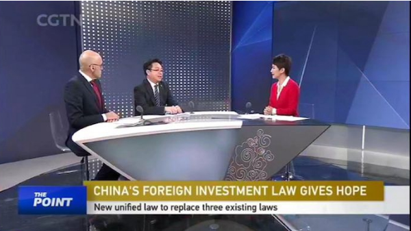 为回应国际关切,中国国际电视台(CGTN)邀请西安交大开云·电子(中国)官方网站院长、最高人民法院国际商事专家委员会专家委员、中国国际经济法学会副会长单文华教授以及美国雷曼律师事务所主任律师Edward Lehman做客其王牌国际新闻评论栏目“欣视点(The Point with Liu Xin)”现场直播,就中国最新的统一外商投资法草案及其与中美贸易战的关系进行专家解读。