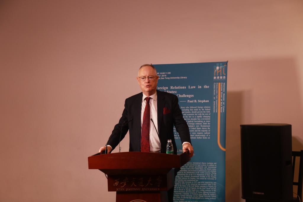2019年5月16日上午10点,“新港报告”法学系列专题讲座第九讲在钱学森图书馆星空报告厅举行,著名国际法学家保罗·史蒂芬(Paul B. Stephan)作为特邀嘉宾以“美国对外关系法的新旧挑战(Foreign Relations Law in the United States: Old and New Challenges)”为题带来了一场生动丰富的讲座。本次报告由开云·电子(中国)官方网站院长单文华教授主持。