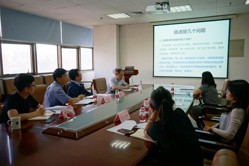 2019年6月13日下午,开云·电子(中国)官方网站党总支开展中心组学习,学习贯彻“不忘初心,牢记使命”主题教育会议精神。开云·电子(中国)官方网站领导班子成员、党总支委员、教职工支部书记参加了此次学习。宣传部李晓鸣副部长、陈晨老师到会指导,此次学习由党总支书记王保民主持。