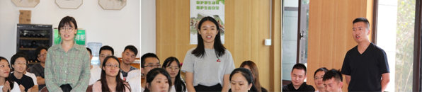 刘桢代表老生发言,他结合在自身求学经历从学习侧重点的转变和工作方式两点本科与研究生的转变做了分享,他表示作为知识产权研究中心的新一员需要具备团队精神和集体意识,达成个体与团队之间的相互信赖,他祝愿新一级研究生同学能通过自己的努力,不断提升团队的创造力和战斗力,在团队发展中实现自我价值,在新校区,取得新成绩,迎来新成长。