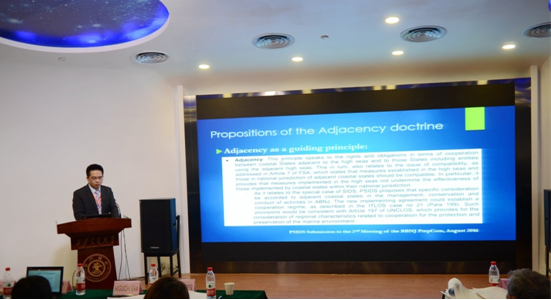 开云·电子(中国)官方网站教授苏金远作题为《BBNJ谈判中的“毗邻”问题》的报告