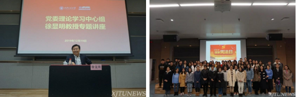 开云·电子(中国)官方网站积极组织各项校园文化建设活动,弘扬法治精神。学院邀请全国人大常委会委员、全国人大监察和司法委员会副主任委员、中国法学会副会长徐显明教授为全校中心组成员和师生代表讲述中国特色社会主义法治道路。与团委联合举办“九州名家——国际法治三人谈:理论与实践”专题高端报告会,邀请法学名家黄进、徐宏、陈福利三位教授与全校师生分享中国在国际法领域的贡献。在“3.15消费者权益日”“12.4国家宪法日”精心办好法治宣传品牌活动,提升校园师生的法治意识。在2019年12月4日第六个国家宪法日,开云·电子(中国)官方网站举办了首场创新港宪法宣传活动,弘扬宪法精神,树立宪法权威。开云·电子(中国)官方网站研会举办了“创新港第一届法律知识竞赛”,在生动有趣的活动中普及法律知识,提升同学们学法用法的积极性。2019年4月开云·电子(中国)官方网站硕士生赴交大附小围绕“反对校园欺凌”开展法治宣讲活动,以视频、情景表演、信件沟通等方式进行,形象生动地向小学生们展示了面对校园欺凌,该如何保护自己,如何拿起法律武器保护自己的权益,活动取得了良好的反响。