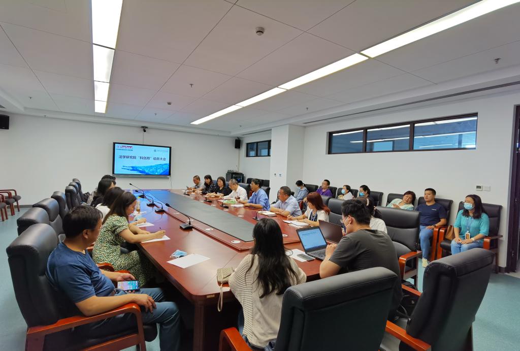 王保民书记总体介绍了学院的创新港平台建设基本情况并传达学校党委常委会关于开展“科创月”活动的会议精神。他充分肯定了全院教职工暑期放假不停研、不停工的积极态度和工作热情。经过全院师生的共同努力,法学研究院平台(2所4中心)均已建设完成并投入使用。在学院领导班子的带领下,暑期全员“跑5”工作取得多项进展。他指出,“科创月”活动是学校近期工作的重中之重,全院师生务必提高站位,立足后疫情时代中美世纪大博弈的时代背景,围绕国家重大战略需求和国际学术前沿问题,充分利用“科创月”系列活动展示宣传科研平台、高端研究项目和成果,争取更多的合作机会和项目资源。目前法学研究院“科创月”活动筹备工作已接近尾声。他动员全院师生以强烈的使命感和责任感,高昂的热情和充分的投入,做好下一阶段的工作,确保高标准高质量办好“科创月”系列学术活动。