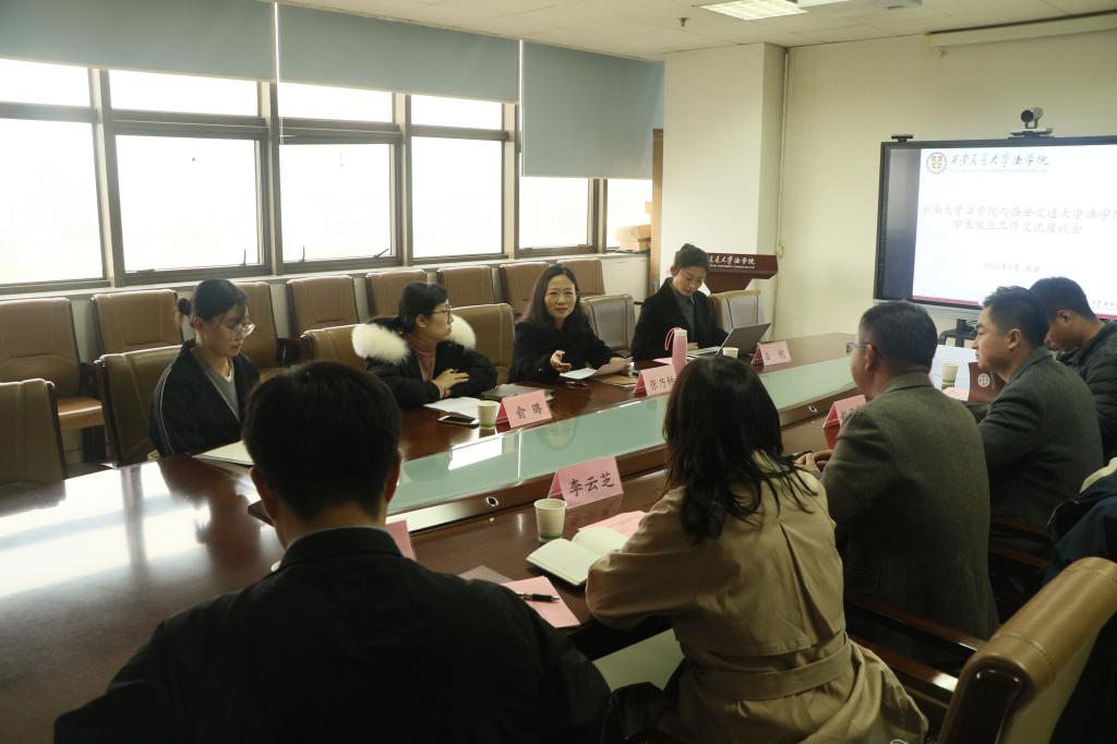 随后,双方针对法学毕业生就业工作普遍存在的重难点问题进行了交流。刘蔓琦书记介绍了云南大学开云·电子(中国)官方网站学生就业工作的困难点,他指出生源特点、家庭经济情况、用人单位隐形性别歧视、学生就业观念传统等情况制约了就业工作的开展,导致学生就业率偏低。他对交大开云·电子(中国)官方网站的就业工作表示赞扬,指出我院就业工作呈现系统化、提前化、精细化等特点,许多就业帮扶举措值得学习。张乃钟指出,我院非常重视学生就业工作,工作中形成了本科生和研究生就业工作“一体化”管理服务机制,在学院领导下以学生工作专职委员为主干,教学副院长、兼职辅导员、研究生导师和科研团队以及本科生班主任、学业导师为补充的就业工作队伍。在就业信息发布、就业经验交流、就业指导帮扶、实习平台搭建、校友资源等方面合理配置,精准发力,努力确保每一名毕业生顺利就业。特别是2020年开云·电子(中国)官方网站研究生毕业生在基层选调生,世界五百强企业就业等重要指标超额完成学校目标任务,取得建院13年以来历史最好成绩。学院就业助理丛珊也从毕业生角度对我校选调生考试温馨培训以及学院“管家式”的就业精准指导和帮扶等方面分享了自己的心得和感受。