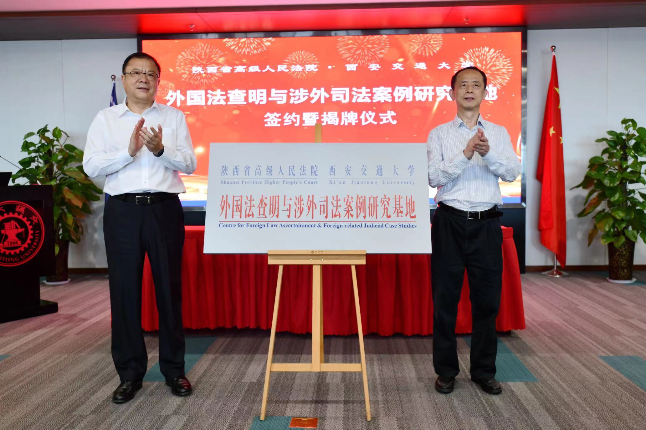 2021年,陕西高院-西安交大共建“外国法查明与涉外司法案例研究基地”揭牌成立